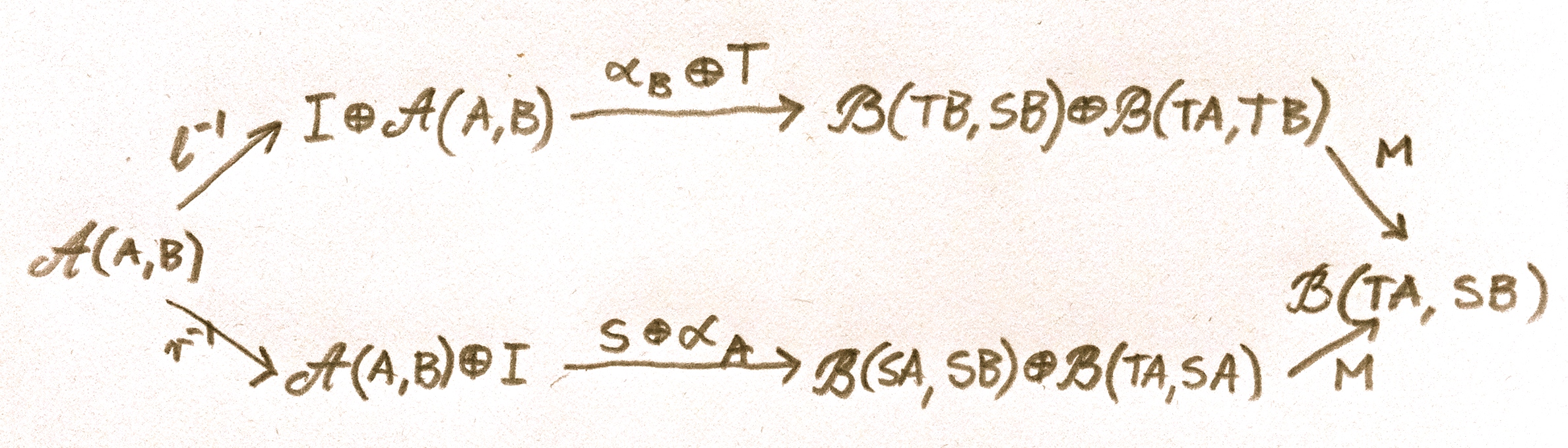 α ⨁ T : I ⨁ 𝒜(A, B) → ℬ(T B, S B) ⨁ ℬ(T A, T B)
