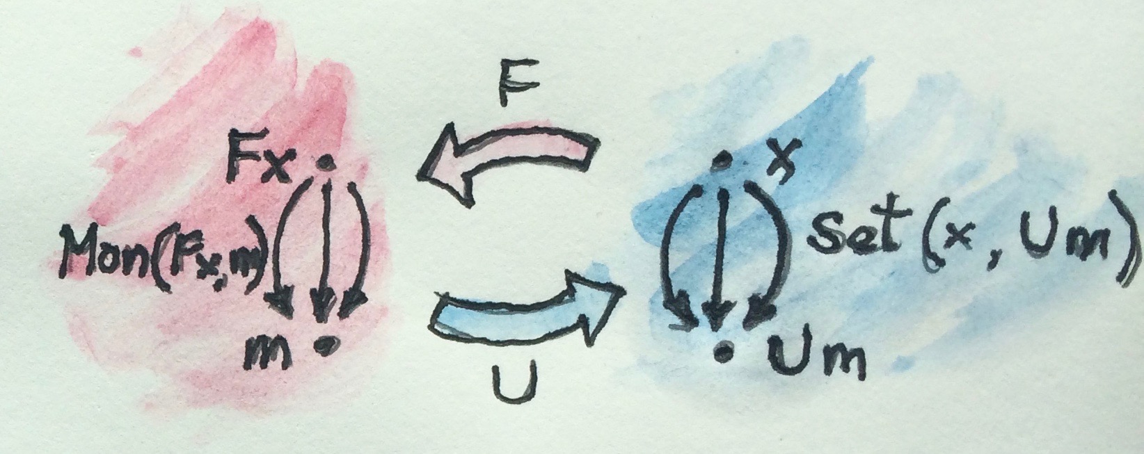 [a]andSum aare free and forgetful monoids, respectively (if it wasn’t for the Num restriction to type parametera):The correct right adjunction for the Free Monoid would be outside Haskell category? Something like