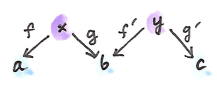 f :: x -> a g :: x -> b