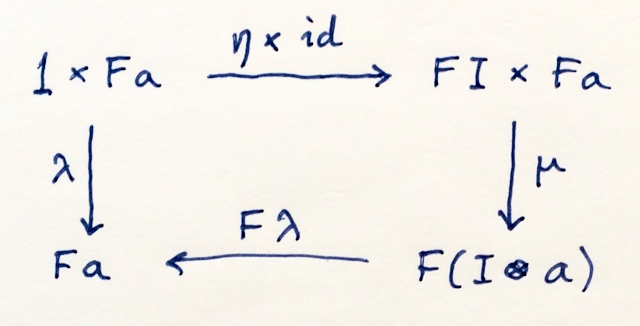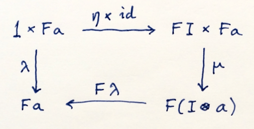 Left unit law. λ is the left unitor in the appropriate category.