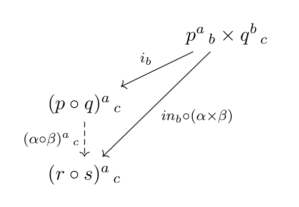 I’ve been experimenting with applying Einstein’s summation convention to profunctors, admittedly with mixed results. This is definitely work in progress and I welcome suggestions to improve it. The main problem is that we sometimes need to apply the sum (coend), and at other times the product (end) to repeated indices. This is in particular awkward in the formulation of the mapping out property. I suggest separating the non-summed indices with product signs or arrows but I’m not sure how well this will work.