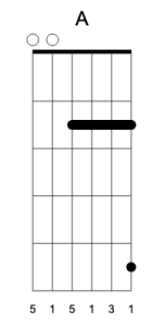 Obviously, we can combine sideways shifts with vertical shifts and, for instance, produce the C chord by shifting down the A shape.