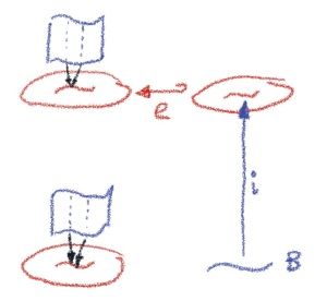 The proof that every cofibration is injective is a bit more involved. It uses a very handy notion of a mapping cylinder. We can visualize a function between two spaces as a bunch of wires. Each wire connects a point